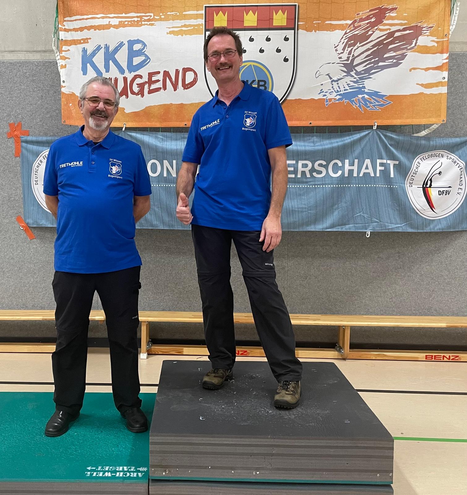 Kürzlich wurden in Köln Lövenich die Regionalmeisterschaften West des Deutschen Feldbogenverbandes im Hallenbogensport ausgetragen. Mit von der Partie waren mit Klaus Frühling und Günter Knall zwei erfahrene Bogenschützen des Wissener SV. Im Wettkampf galt es 60 Wertungspfeile in einer Entfernung von 20 Yards (18,3 Meter) auf eine Zielscheibe im Durchmesser von 40 cm abzugeben. Obwohl beide Sportler nach eigenen Aussagen nicht vollends mit ihren Ergebnissen zufrieden waren, gab es bei der Siegerehrung eine Überraschung. Günter Knall belegte in der Klasse Barebow Recurve Senioren Rang zwei und Klaus Frühling in der Klasse Bowhunter Recurve Veteran den 1. Platz. Sein Ergebnis hätte ebenfalls ausgereicht, um alle Altersklassen zu gewinnen.